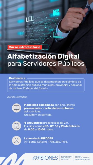 Esta iniciativa apunta a promover desde cero la alfabetización digital en el ámbito de la gestión pública, a partir del desarrollo personal de los participantes con el fin de garantizar la equidad y accesibilidad a herramientas de actualización y formación de calidad.