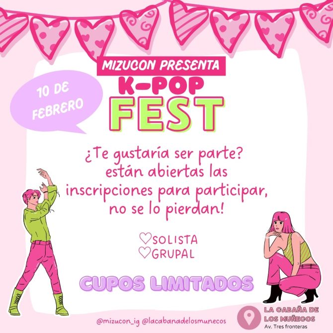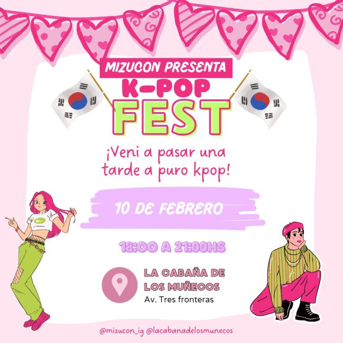 Llega a la ciudad de las cataratas una propuesta para los seguidores de la cultura K-Pop. El sábado 10 de febrero a partir de las 18:00 horas en el patio de la Cabaña de los Muñecos se realizará la primera edición del K-Pop Fest. Desde la organización Gabriel Krein (MizuCon) comentó que el evento consistirá en una competencia de baile con jurados, en la cual se sumarán juegos temáticos y sorteos.