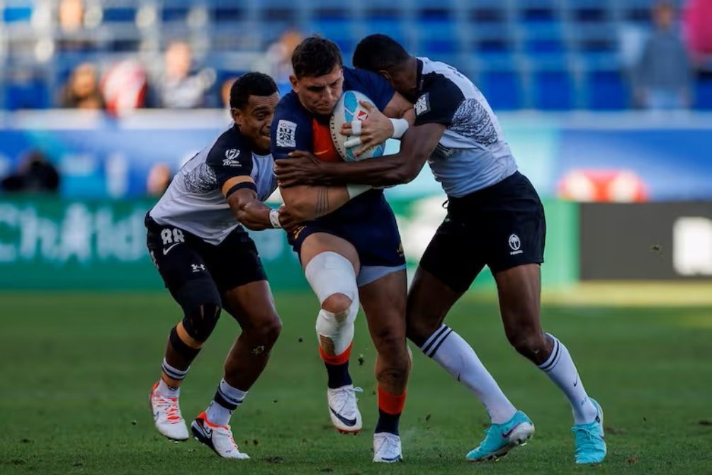 La frustración por la eliminación temprana no alcanzó para frenar el ímpetu de los Pumas 7s. Lejos de las instancias definitorias a las que se habían acostumbrado, en la despedida del Seven de Los Ángeles debieron conformarse con jugar por el quinto puesto ante Fiji. La victoria por 26-21, gracias a dos tries sobre el final, le permite al seleccionado argentino cerrar la gira por América del Norte con una sonrisa y un saldo altamente positivo, más allá de que se cortó la racha de éxitos.