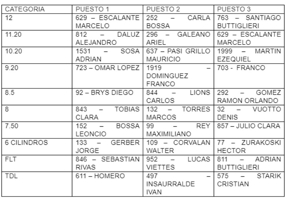 De esta manera quedan las posiciones para esta segunda fecha del Campeonato Misionero de Arrancadas.