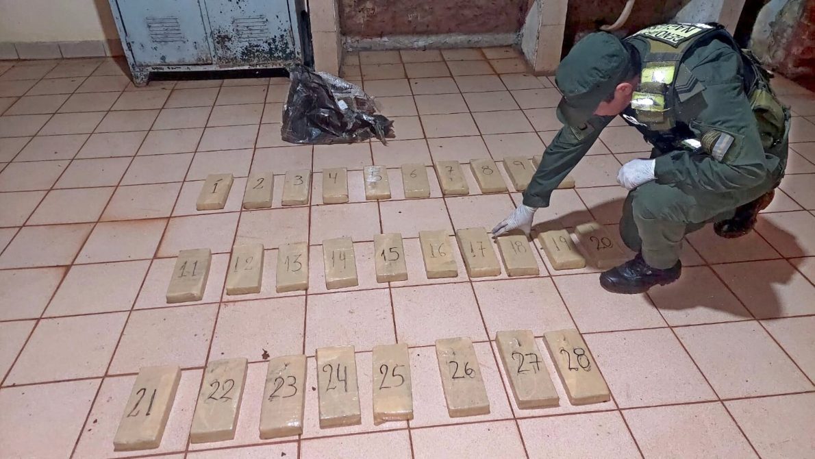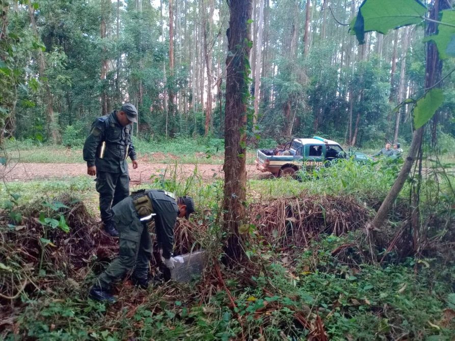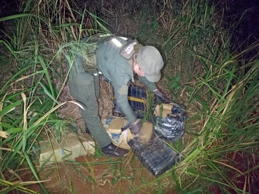 En un segundo procedimiento, integrantes del Grupo “El Alcázar”, dependiente del Escuadrón 10 “Eldorado”, se encontraban realizando Actividades de Patrullaje sobre caminos secundarios en inmediaciones a la Ruta Nacional Nº 12, momentos en los que advirtieron a dos personas mientras manipulaban un bulto de gran tamaño. Al notar la presencia de los uniformados, los individuos se adentraron rápidamente en la zona montuosa lindante sin poder darles alcance. Al inspeccionar el bulto hallado en el lugar se constató que dentro del mismo se encontraban acondicionados 28 paquetes rectangulares, cuyo contenido vegetal arrojó resultados positivos para “Cannabis Sativa”.