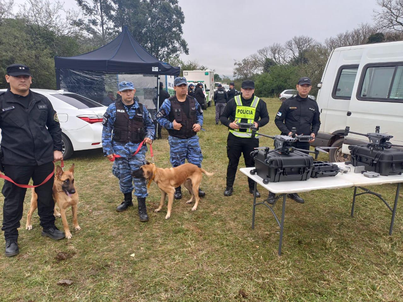 Desde las primeras horas del domingo, la Policía de Misiones puso a disposición -para la búsqueda de Loan Peña-, los cuatro guías y los perros Nicol y Frodo. Así como, los tres pilotos de la División de Vehículos Aéreos Policiales No Tripulados, equipados con drones del tipo EDJI Enterprise Matrice 30T.