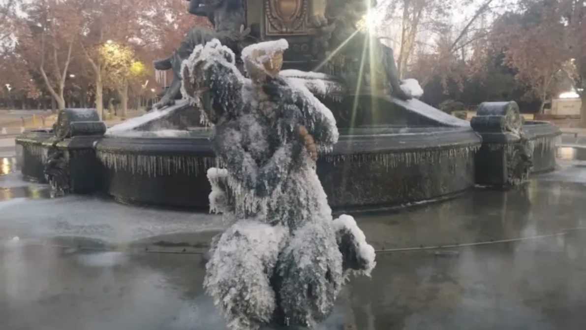 El hielo se apoderó de lagos, arroyos y hasta de la Fuente de los Continentes, en la capital de Mendoza.
