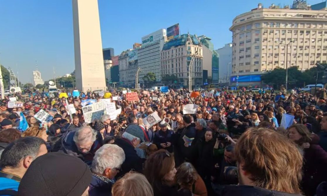 Cientos de personas se manifestaron esta tarde en el Obelisco para reclamar la aparición con vida de Loan Danilo Peña, al tiempo que el padre del menor se descompensó y fue atendido por el SAME.