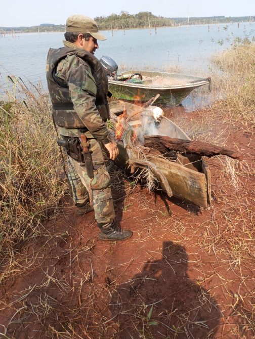 Un total de 40 redes de distintos tamaños y un bote rústico de madera fueron incautados en una recorrida realizada por el Paisaje Protegido Lago Urugua-í.