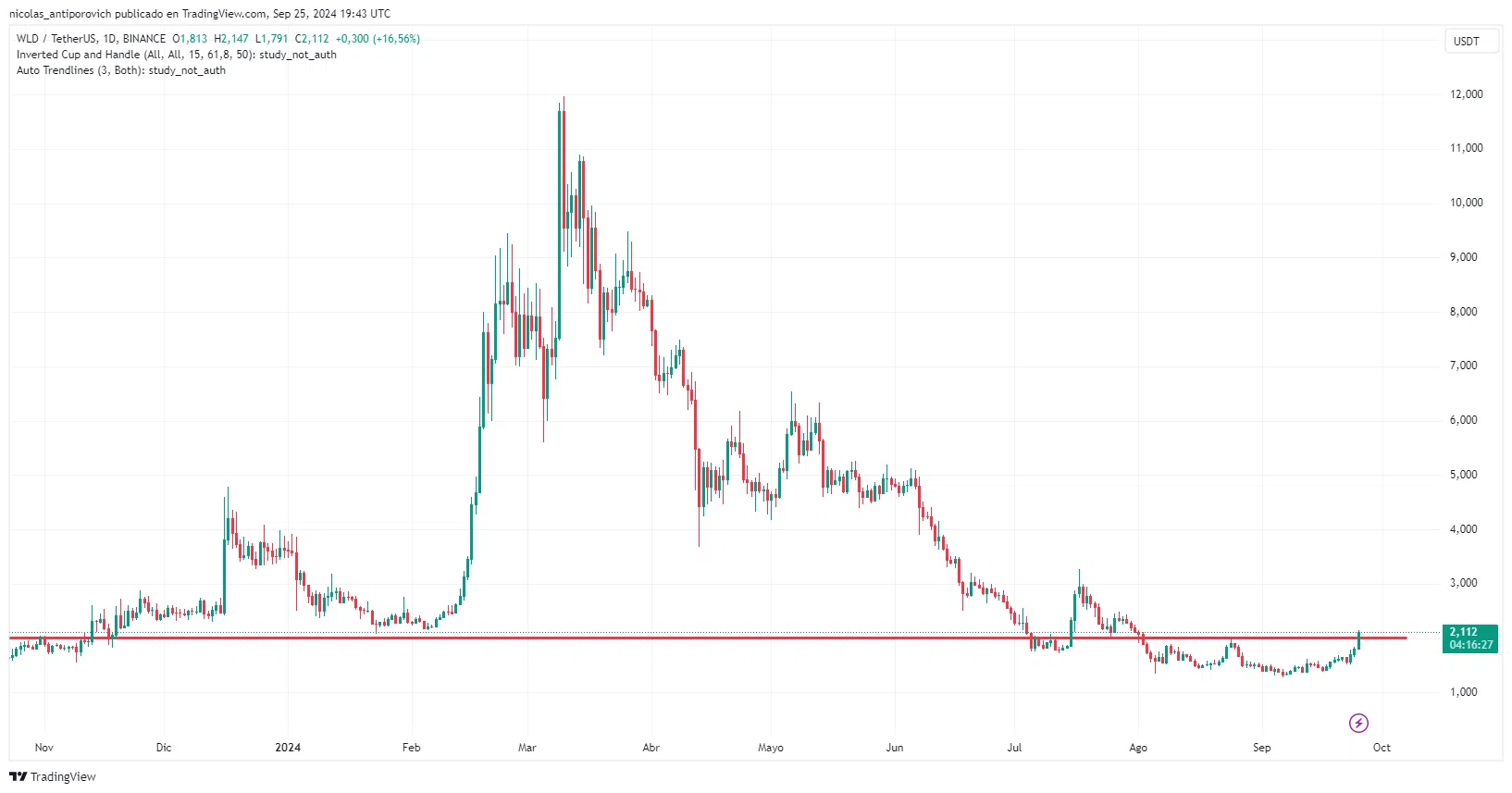 El precio del token Worldcoin (WLD) rompió lo que ha sido una histórica resistencia: la barrera psicológica de los 2 dólares.