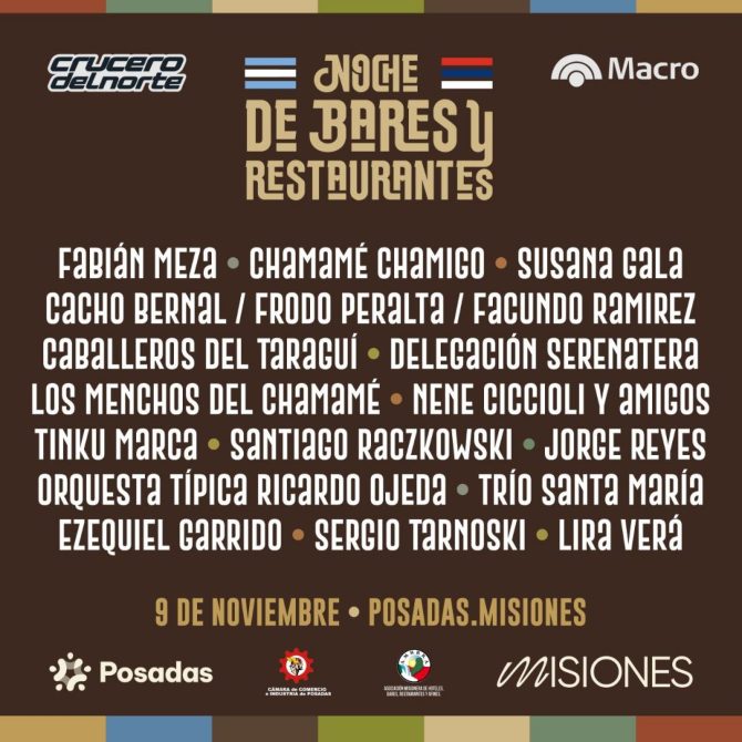 Este sábado 9 de noviembre, Posadas se prepara para vivir una experiencia inédita: la Noche de Bares y Restaurantes. Es una propuesta que fusiona la cultura local, el folklore misionero y la gastronomía de la ciudad.