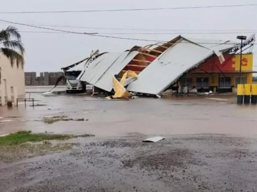 Las intensas precipitaciones y ventarrones comenzaron alrededor de las 9 de la mañana y “en 20 minutos hizo un desastre”, según describió el intendente Pablo Ladrón de Guevara tras el temporal. El viento se llevó al menos cuatro tinglados, techos de viviendas y varios galpones quedaron destruidos por completo, además de la caída de postes de electricidad que dejaron a toda la localidad sin luz.