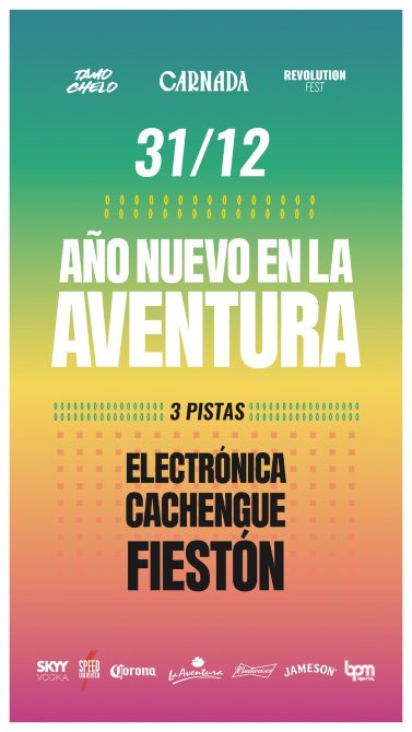 La noche más esperada, con el brindis por el nuevo año, presenta a grandes referentes de la música electrónica y el cachengue. Así, el complejo La Aventura (Av. Zapiola 965) dispondrá de tres pistas diferentes para que el público pueda disfrutar las primeras horas del primer día del 2025. El evento, destinado a mayores de 18 años, es organizado por tres productoras locales: Carnada, Tamo Chelo, y Revolution Fest. Con la preventa agotada, y ante la masiva concurrencia que se espera, desde la producción aseguran facilidad y rapidez en los accesos y para las compras dentro del espacio.
