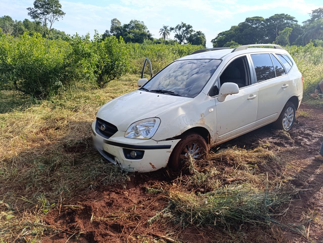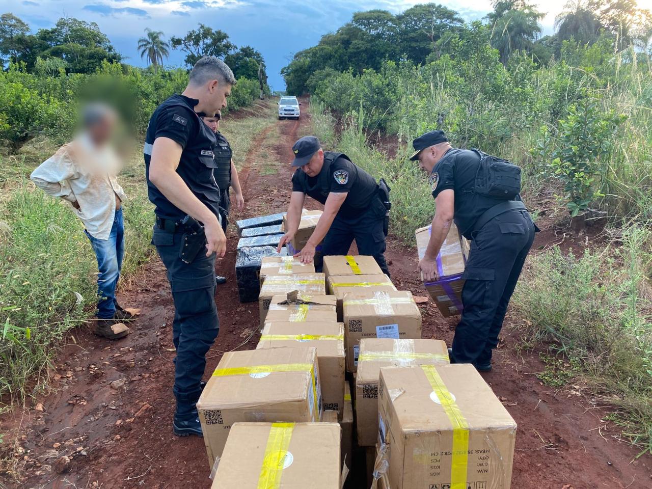 Tras iniciar un seguimiento controlado, el vehículo ingresó a un camino vecinal. Los agentes, al verificar las alternativas de caminos, lograron ubicar el rodado en un sendero de barro donde el vehículo se encontraba atascado debido a las malas condiciones climáticas de la zona. Fue en ese momento que los policías encontraron a dos personas en el lugar: un hombre de 45 años y una mujer de 34 años, ambos domiciliados en Puerto Iguazú.