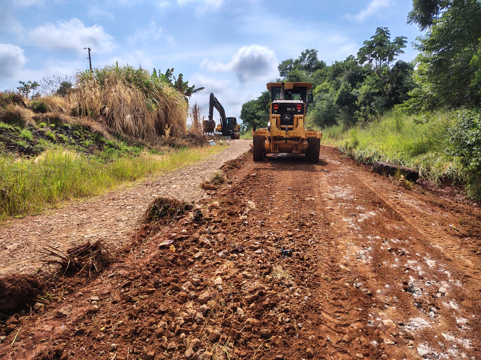 En Garuhapé, las obras se concentran en la Ruta Provincial 220, donde las tareas incluyen la recuperación de la calzada principal para mejorar las condiciones de tránsito de los vecinos y productores de la zona.