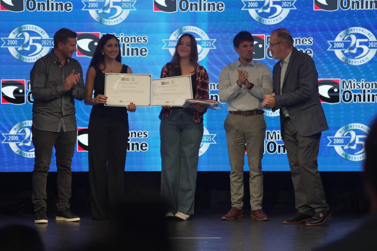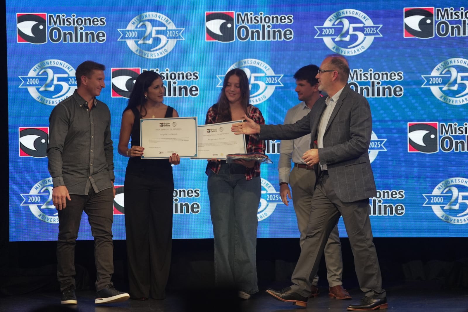 En el marco del 25º aniversario de Misiones Online, dos jóvenes estudiantes destacadas de la provincia recibieron un reconocimiento económico de un millón de pesos cada una. Esta significativa iniciativa fue acompañada por el Ministerio de Educación de Misiones, a través de la Dirección de Políticas Estudiantiles dependiente de la Subsecretaría de Educación, destacando el compromiso con la formación y el desarrollo del talento joven.