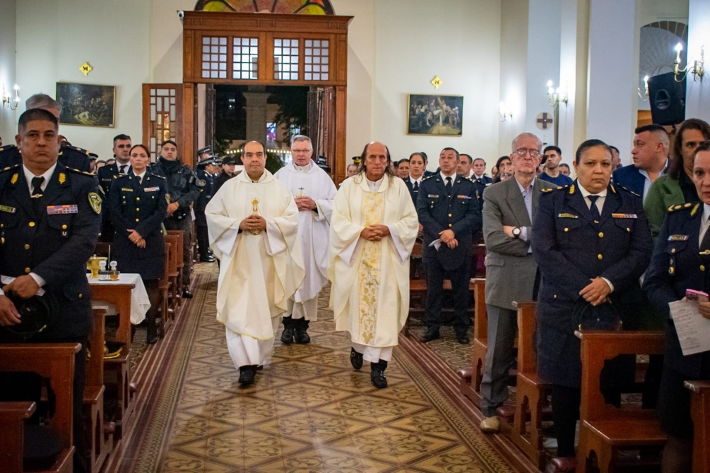 La celebración fue presidida por el Capellán Policial Vicario General Carlos Viera y participaron el Subsecretario de Seguridad y Justicia Milton Astroza, el jefe de la Policía de Misiones, Comisario General Sandro Alberto Martínez, el subjefe Comisario General Marcos David Lopez Asencio e integrantes de la Plana Mayor y la subsecretaria de culto Rossana Barrios.