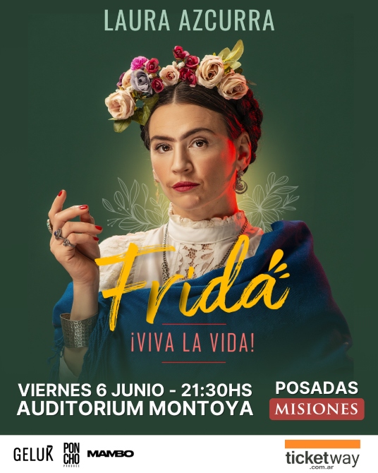 El viernes 6 de junio a las 21:30 horas, en el auditorio del Montoya se presenta “Frida ¡Viva la Vida!”, una obra que rinde homenaje a la icónica artista mexicana Frida Kahlo, interpretada por la actriz Laura Azcurra.