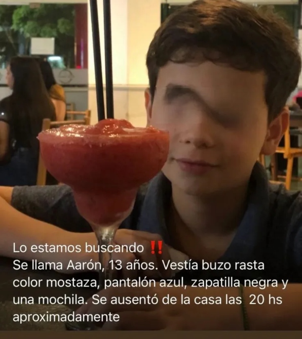 Aarón Tiziano B. (13) se reencontró con su familia tras ser localizado en barrio Los Lapachos, cerca de donde su familia lo vio horas antes. El menor se encuentra en buen estado de salud.