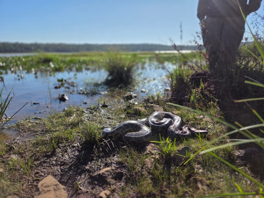 Este jueves por la mañana, la Policía de Misiones, a través de la Dirección Defensa del Medio Ambiente, y en coordinación con personal del Ministerio de Ecología, llevó adelante la liberación de una boa curiyú (Eunectes notaeus) en una zona segura y alejada de Candelaria.