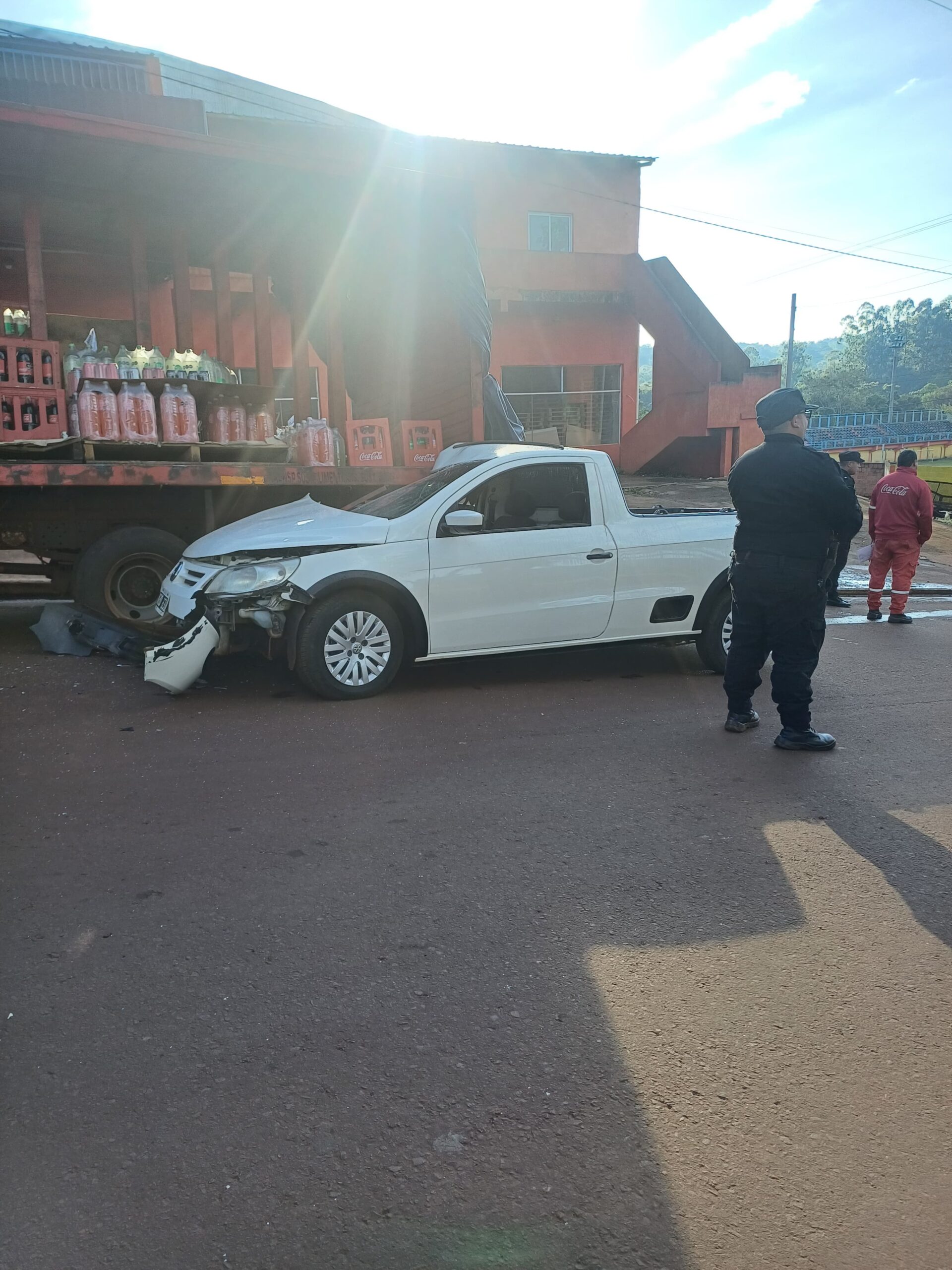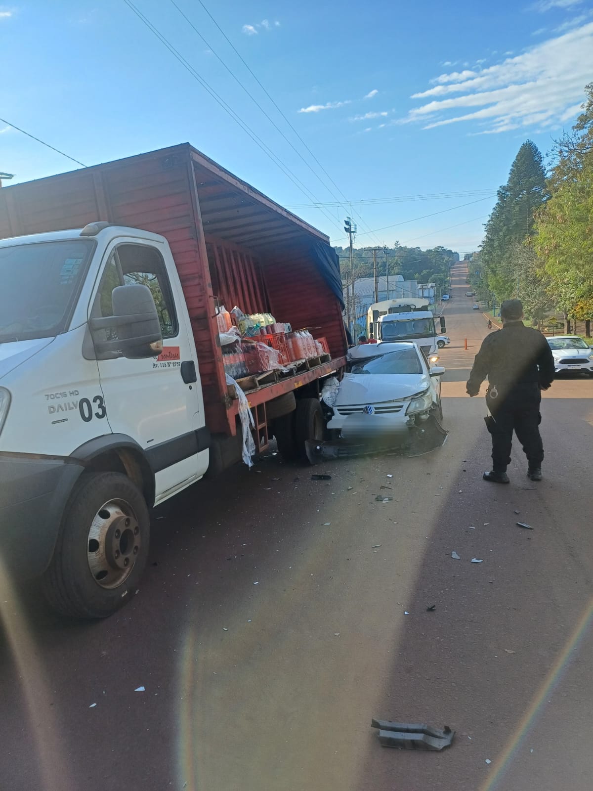En la mañana del lunes, a las 09:20, se registró una colisión vehicular en la intersección de la avenida El Mensú y calle Caaro, en Puerto Piray. Según informaron fuentes policiales, el hecho involucró a un Volkswagen Saveiro y un camión Iveco perteneciente a la empresa de distribución de bebidas “Mis Fronteras S.A”.