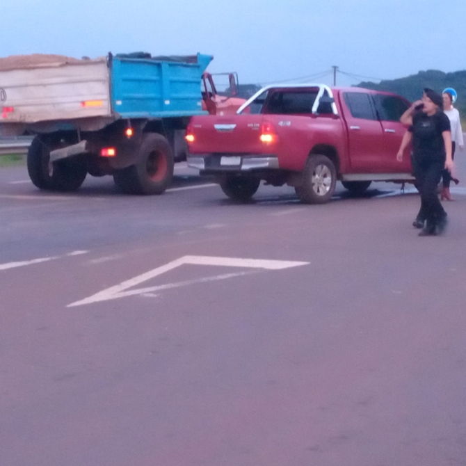Este martes 18 de junio, cerca de las 07:50, se produjo un siniestro vial en la Ruta Nacional 12, sentido Candelaria-Garupá, a la altura del retorno hacia Candelaria. El hecho involucró un camión Rogger 800 y una camioneta Toyota Hilux.