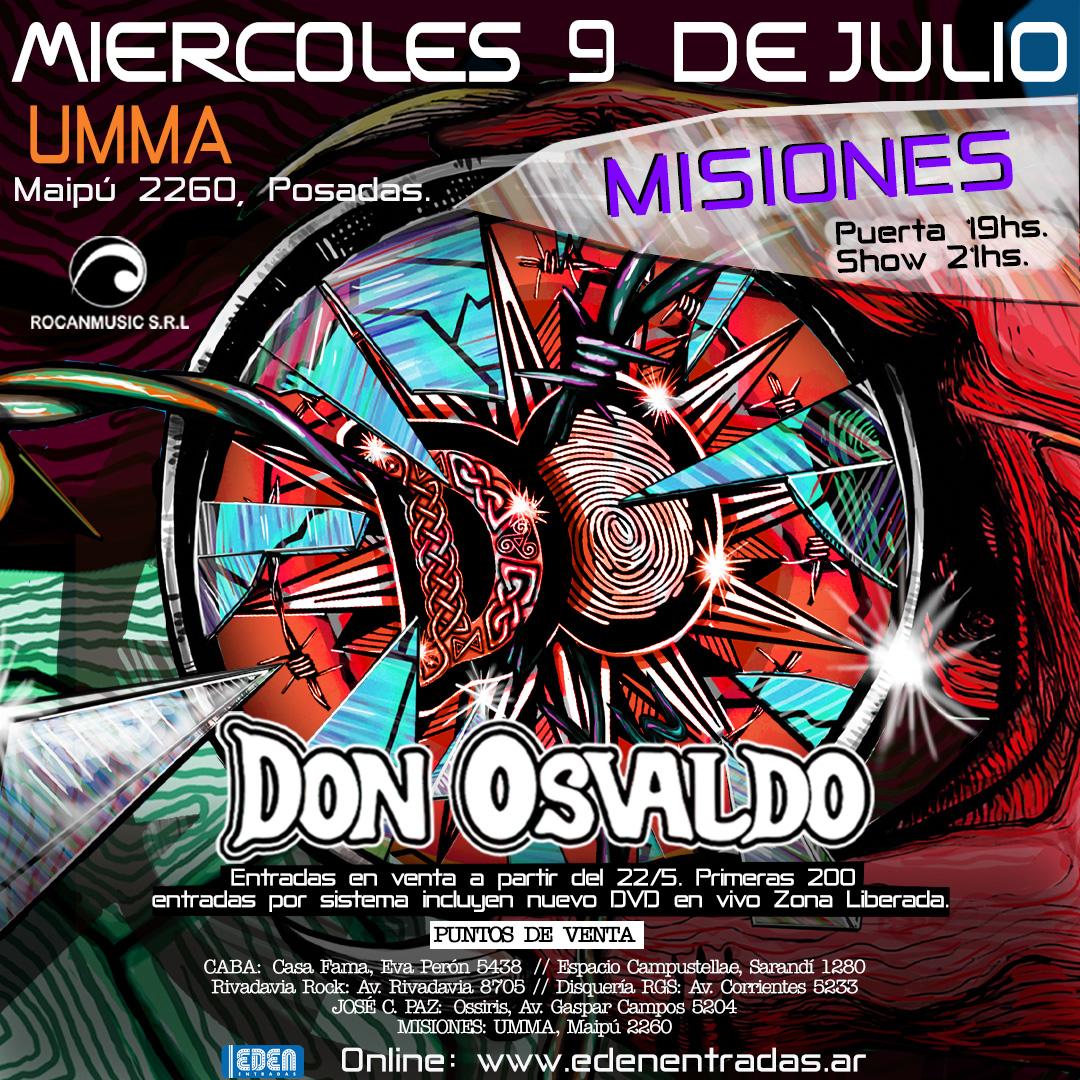 Las entradas ya están disponibles en el sitio web www.edenentradas.ar. Las primeras 200 entradas adquiridas a través del sistema online incluyen un DVD en vivo de regalo. Zona Liberada, un DVD que recopila grandes momentos de la banda en vivo a lo largo de su carrera. Este nuevo material audiovisual estará disponible desde junio y será parte esencial de la experiencia que Don Osvaldo propone este año.