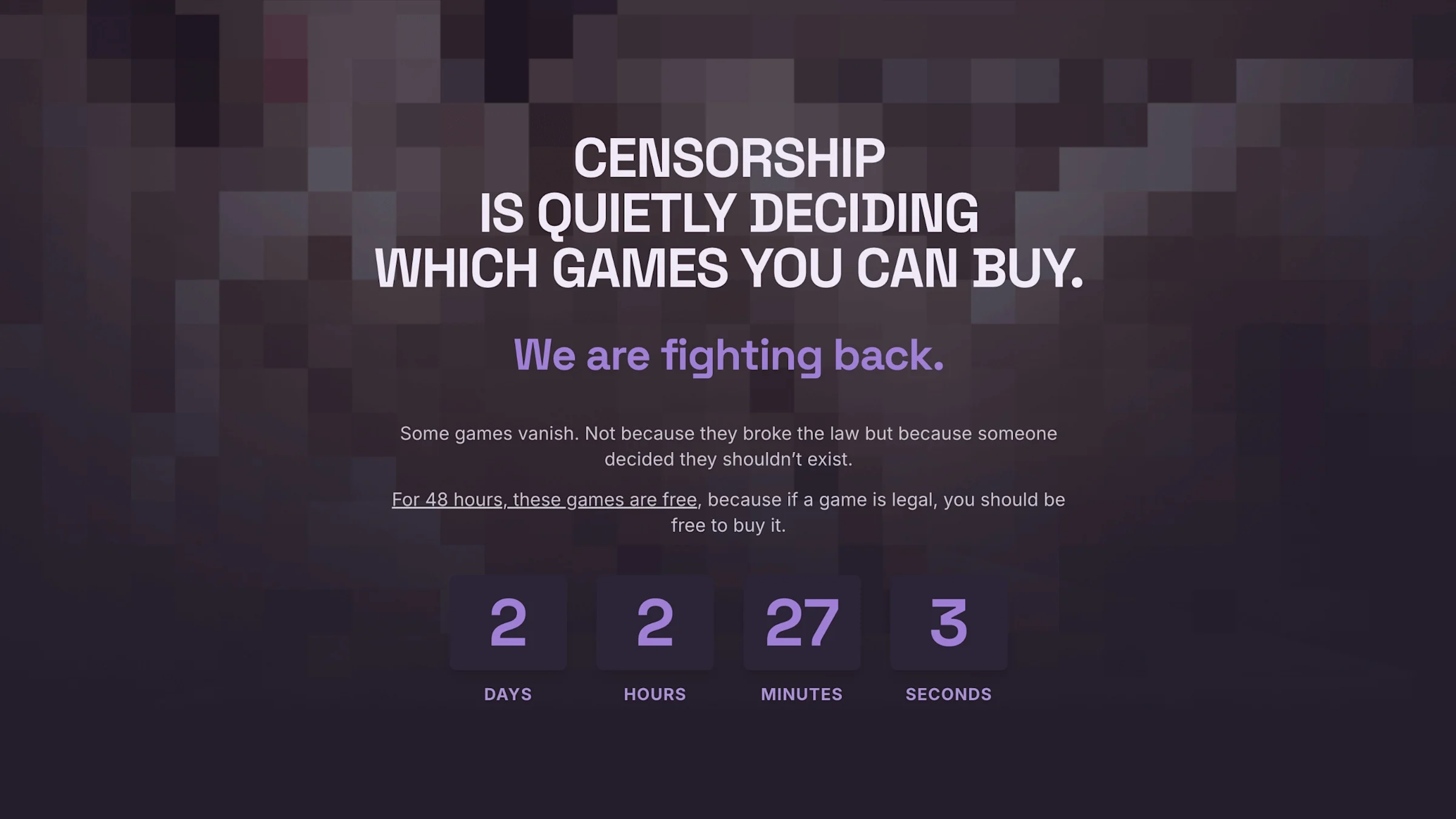 El sitio de distribución digital GOG (Good Old Games) lanzó una campaña en defensa de la libertad creativa: durante 48 horas, ofrece 13 videojuegos para adultos de manera gratuita en el sitio FreedomtoBuy.games, creado junto a desarrolladores independientes. La medida es una respuesta directa a las recientes políticas de censura aplicadas por plataformas como Steam e Itch.io, que comenzaron a eliminar de sus catálogos títulos considerados sexualmente explícitos o violentos.