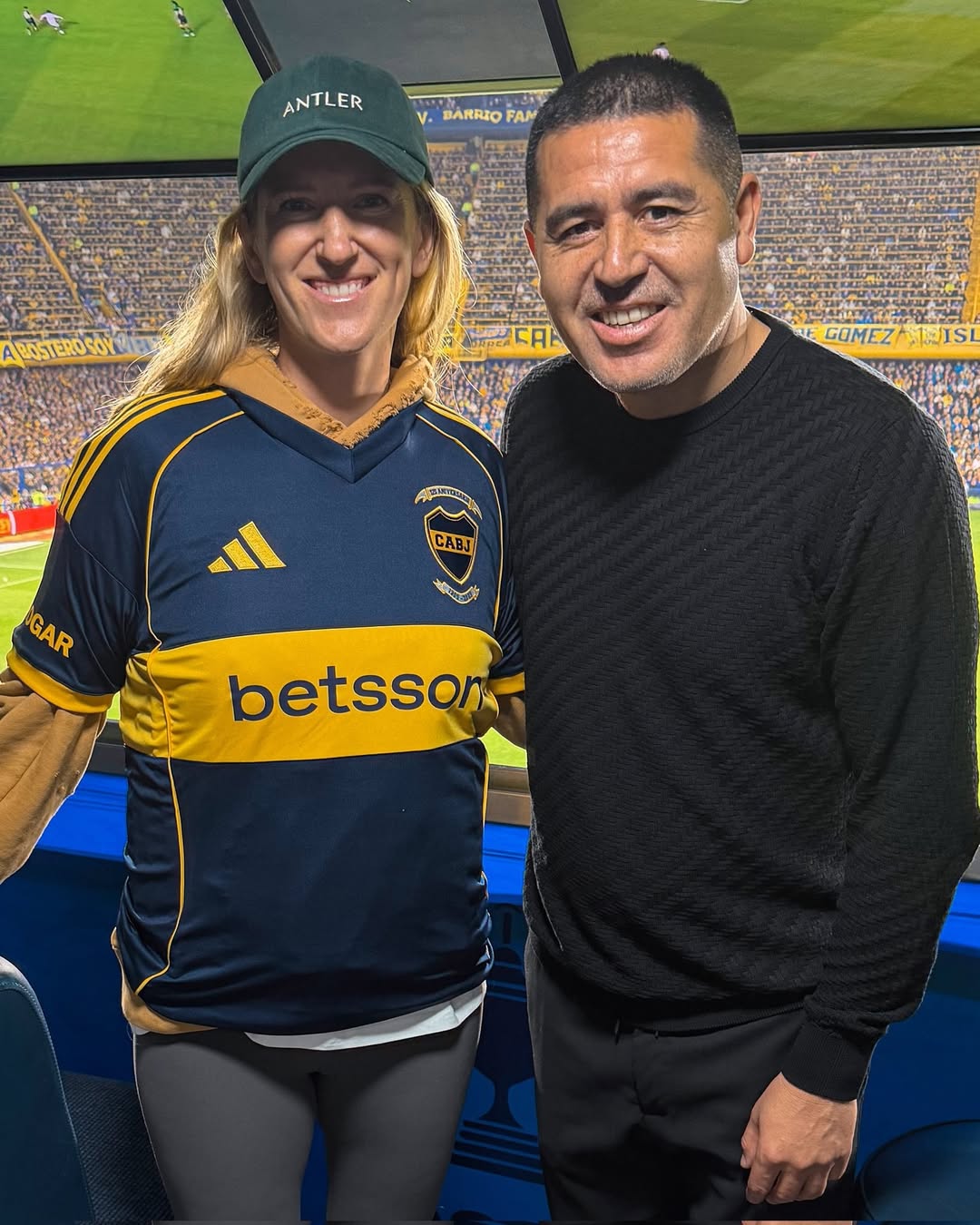 Hacia el final del partido, Juan Román Riquelme —presidente del club— se acercó al palco para entregarle una camiseta de Boca. Posaron juntos para una foto que también recorrió redes.