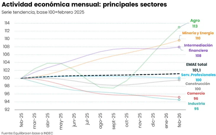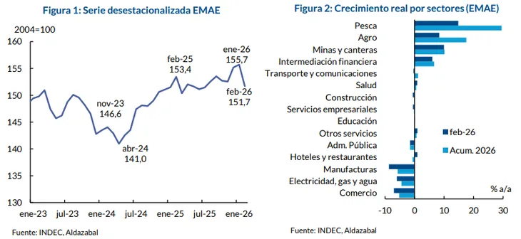 Con este resultado, la serie desestacionalizada alcanzó su nivel más bajo desde julio de 2025. En la comparación interanual, la actividad también mostró una baja del 2,1%, la más pronunciada desde septiembre de 2024.